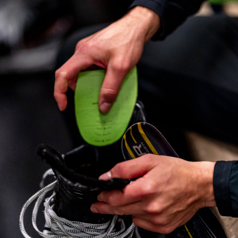 Quuikfeet are designed to be compatible with any type of insole, whether it is a custom insole or the original insole that came with the skate. This means that players can easily integrate Quuikfeet into their existing skates without having to sacrifice the comfort or support of their existing insole.